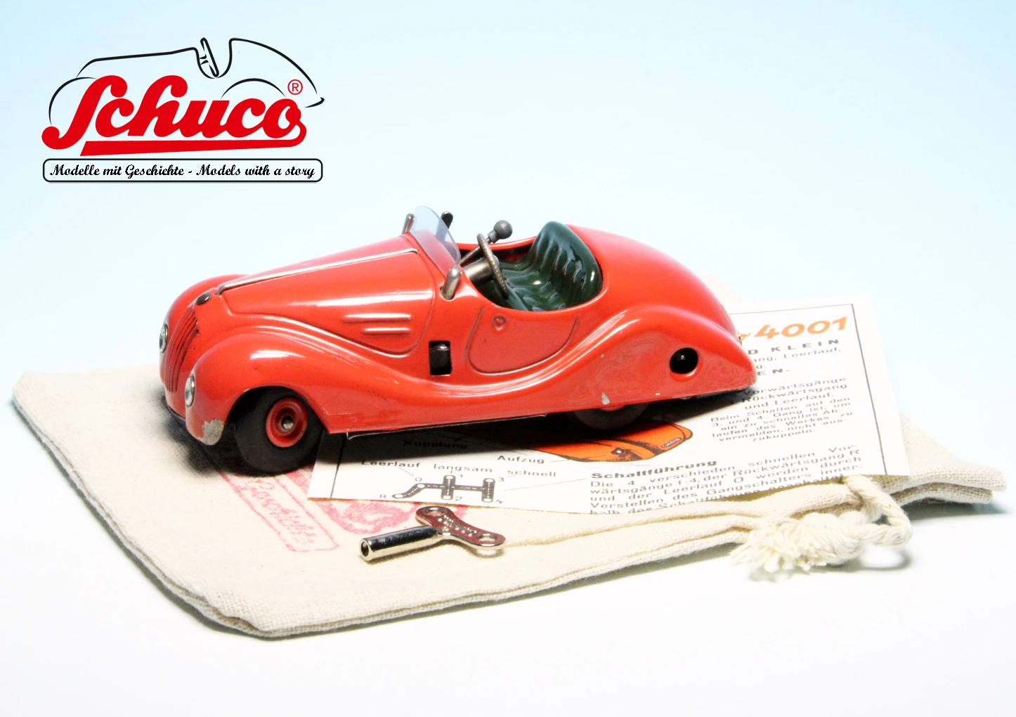 Das große Vorbild des Schuco Examico 4001 ist der legendäre BMW 328 Roadster und wahrscheinlich eines der bekanntesten Schuco-Modelle. Der Examico 4001 dient auch als Fahrschulauto und erhielt erstmals vor dem Zweiten Weltkrieg im Jahr 1939 Einzug in das Schuco Sortiment, wurde zunächst bis 1959 gebaut und kam in den 1980er Jahren ein zweites Mal in das Schuco-Sortiment.