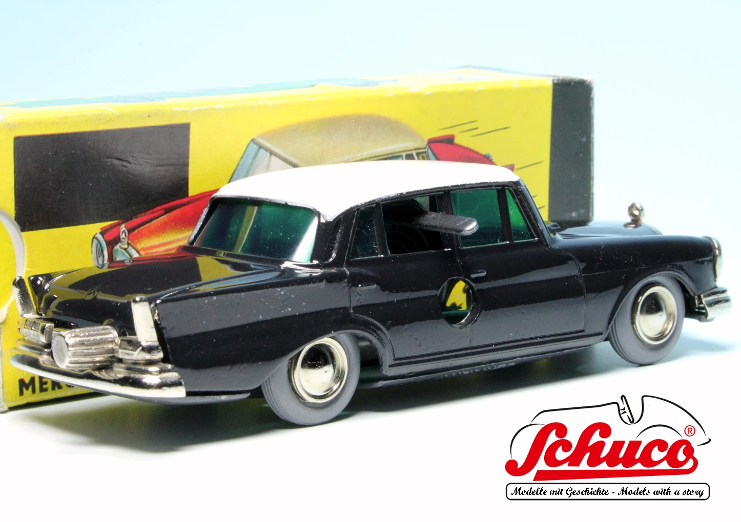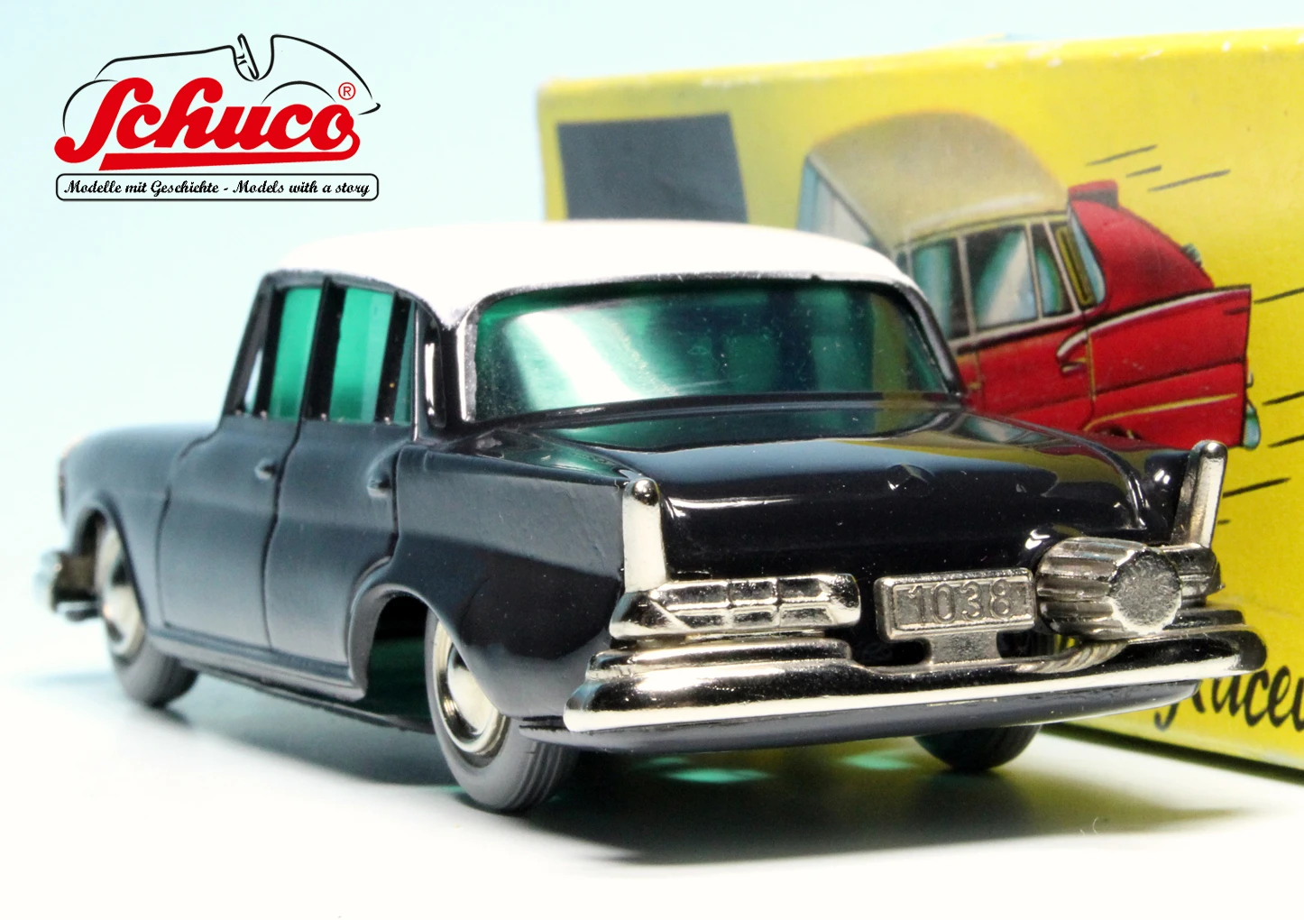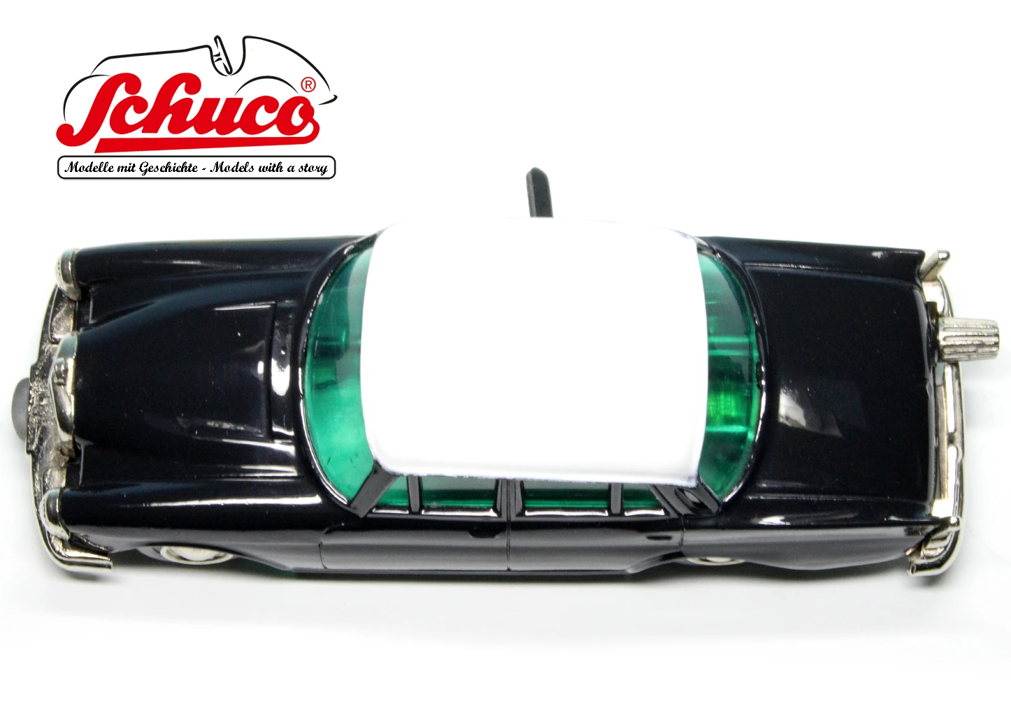 Baujahr ca. 1980er Jahre, in Farbe schwarz mit weißem Dach, perfekter und fabrikneuer Zustand und ohne jegliche Spielspuren, alle Funktionen einwandfrei und getestet, auf der Unterseite gemarkt mit „Made in Western Germany“, alle verbauten Teile sind dem Baujahr des Modells entsprechend, in der späteren Ausführung Nutz-Ausführung ohne „Schuco“-Logo auf der Unterseite und dem Karton, mit original Umkarton.
