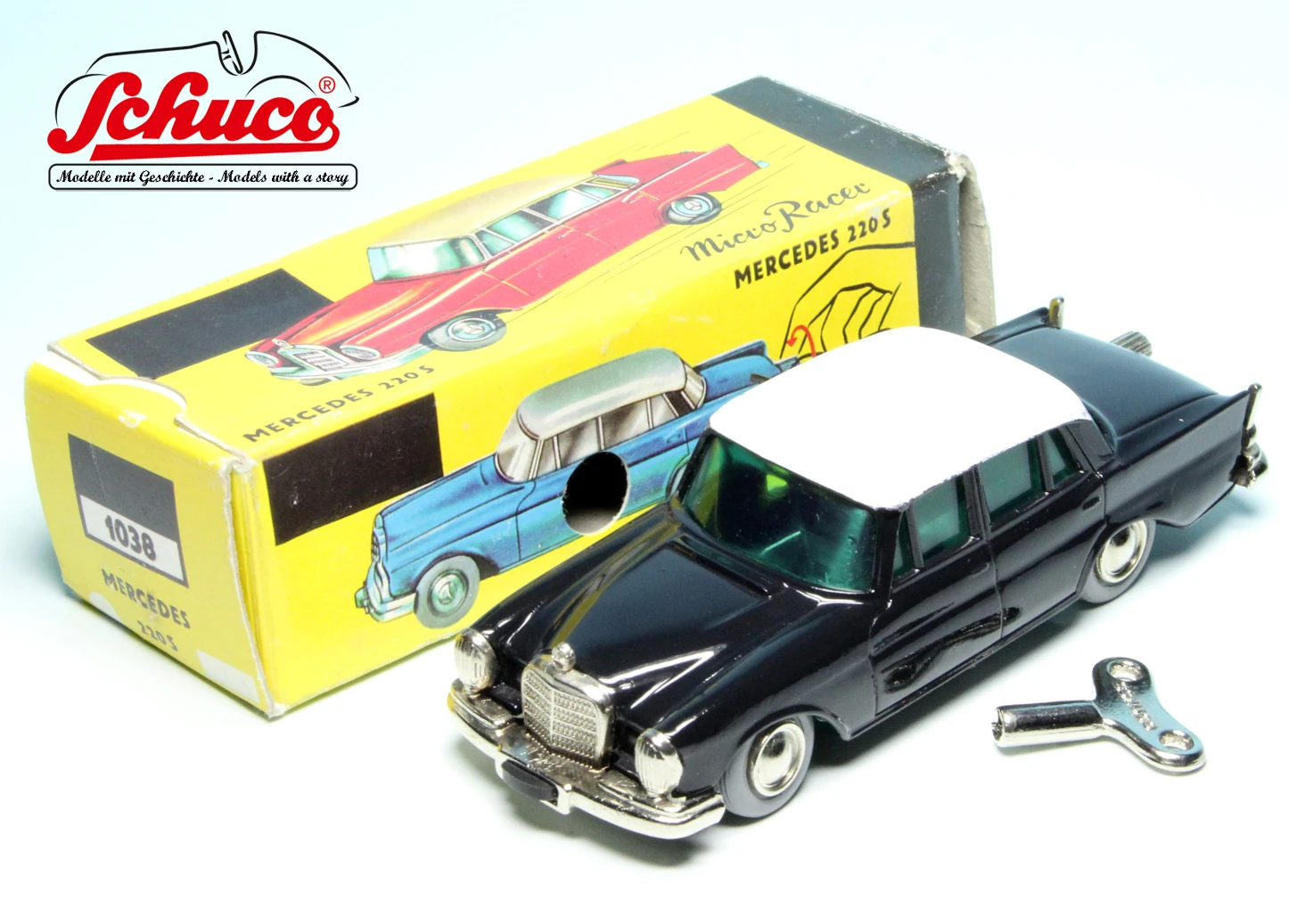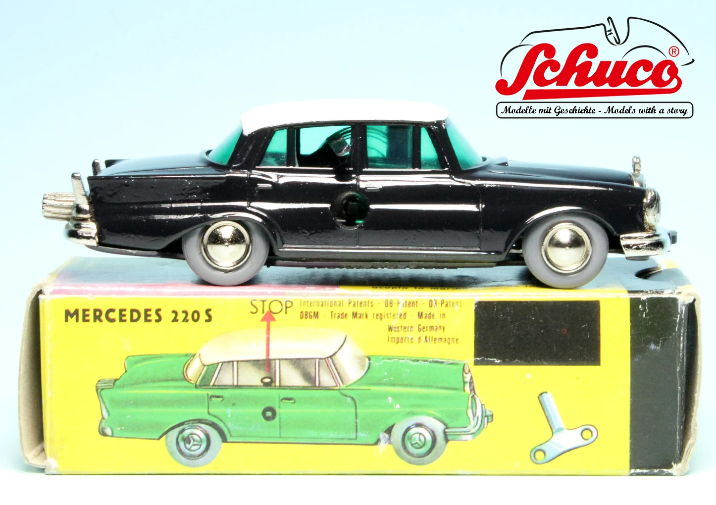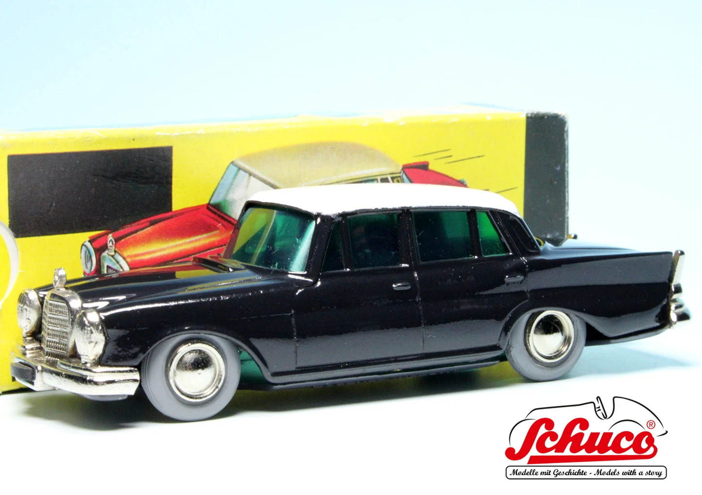 Baujahr ca. 1980er Jahre, in Farbe schwarz mit weißem Dach, perfekter und fabrikneuer Zustand und ohne jegliche Spielspuren, alle Funktionen einwandfrei und getestet, auf der Unterseite gemarkt mit „Made in Western Germany“, alle verbauten Teile sind dem Baujahr des Modells entsprechend, in der späteren Ausführung Nutz-Ausführung ohne „Schuco“-Logo auf der Unterseite und dem Karton, mit original Umkarton.